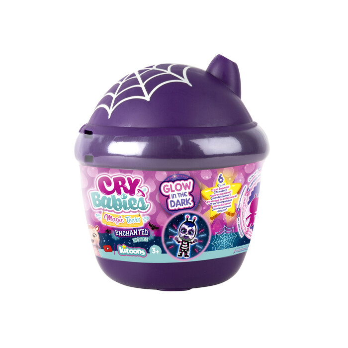 "Τα αγαπημένα σου Cry Babies Magic Tears τώρα σε Enchanted έκδοση με γιορτινή αμφίεση Halloween! Φάρσα ή κέρασμα; Τα Μίνι Κλαψουλίνια Μαγικά Δάκρυα Enchanted λάμπουν στο σκοτάδι και φοράνε Halloween πιτζάμες Τάισε τα με το μαγικό μπιμπερό, πίεσε την κοιλίτσα τους και δες τα να κλαίνε με αληθινά δάκρυα, όπως ακριβώς στα επεισόδια στο Youtube! Κατοικούν σε σπιτάκι ? μπιμπερό με ιστό αράχνης στην κορυφή που επίσης λάμπει στο σκοτάδι! Σύλλεξε και τους 6 διαφορετικοί χαρακτήρες. Κάθε χαρακτήρας Cry Babies Magic Tears περιλαμβάνει 4 αξεσουάρ + 2 εξατομικευμένα. Θα βρεις τα σπάνια που φωσφορίζουν στο σκοτάδι;"