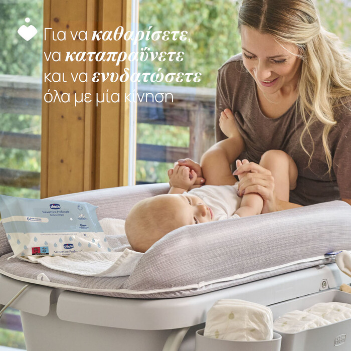 Chicco breast wipes with glycerin and vitamin E hydrate and protect the skin's natural defenses.