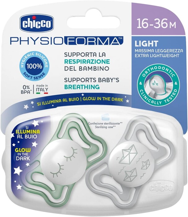 Chicco Light PhysioForma Night Pacifiers for 16-36 Months 2 pcs