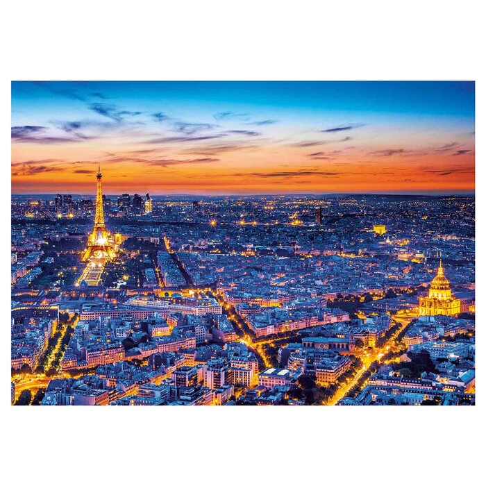 Clementoni Puzzle 1500 pieces High Quality Collection Flying Over Paris. The most appealing images, the greatest variety of sizes and signature Clementoni quality for a range that is a gold standard for jigsaw lovers everywhere. Acutely attuned to the importance of environmental awareness, Clementoni makes extensive use of recycled materials and avoids any components containing pollutants.