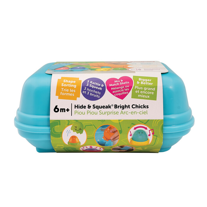 A clever alternative at Easter for Mums and Dads who d rather avoid chocolate, Hide and Squeak Bright Chicks are a welcome addition to the Toomies family all year round, and easy to take with you, thanks to the handy storage egg box that clicks shut.
