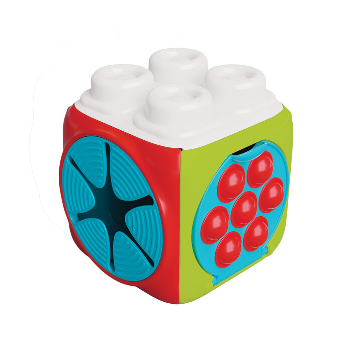 Each side has a different texture or feature that encourages exploration, sensory development and manual dexterity.