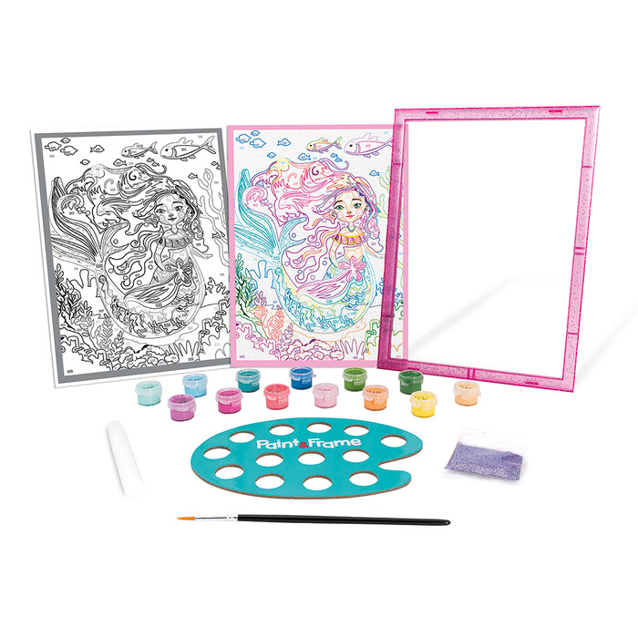 Paint & Frame Paint by Numbers Mythical Mermaid. With the Paint & Frame kits, based on coloring by numbers technique, children learn to color the different images with care and attention, thus improving their artistic talent and developing motor skills. In the end, they will feel a sense of joy, pride and satisfaction that will stimulate them to want to continue painting.