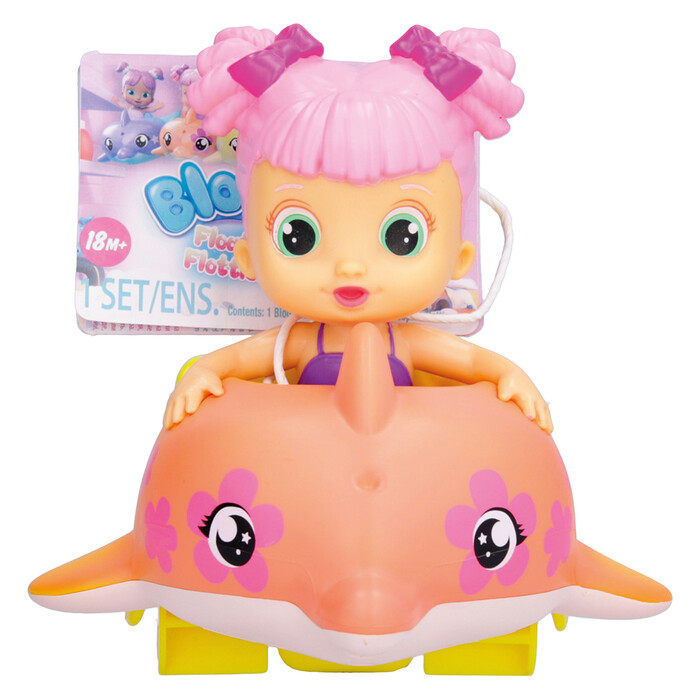 Bloopies Dolphins are the Bloopies' pets that wear cute swimming floats! All 6 characters have a colourful and playful design. When you pull the rope on the back of the float and put the puppy into the water, they will move as if they are really swimming! The dolphins and their floats squirt water and make bubbles through their mouths! Enjoy bath time fun with the Bloopies Dolphins!