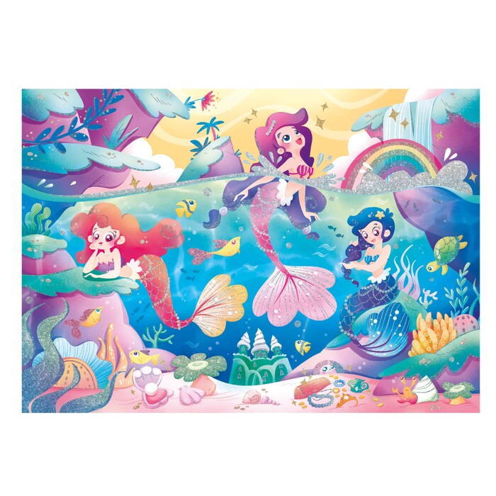 Clementoni Kids Puzzle Super Color Glitter Effects Mermaids. Distinctive finishes and original effects turn a classic childrens pastime into a modern up-to-date game experience. Unique creations that can be used to decorate kids bedroom or be given as presents to friends. A vast array of jigsaw puzzles specially designed for kids to help them hone their powers of observation as well as their logical and manual skills. Captivating images with vibrant appealing colours, depicting childrens most beloved characters for hours of fun with friends and family. Clementoni give its puzles some sparkle and shine with Glitter Effects Series. Acutely attuned to the importance of environmental awareness, Clementoni makes extensive use of recycled materials and avoids any components containing pollutants.
