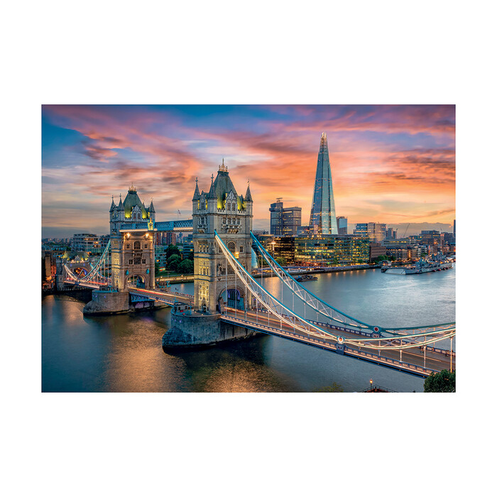 Clementoni Puzzle 1000 pieces High Quality Collection London Bridge By Night. The most appealing images, the greatest variety of sizes and signature Clementoni quality for a range that is a gold standard for jigsaw lovers everywhere. Acutely attuned to the importance of environmental awareness, Clementoni makes extensive use of recycled materials and avoids any components containing pollutants.